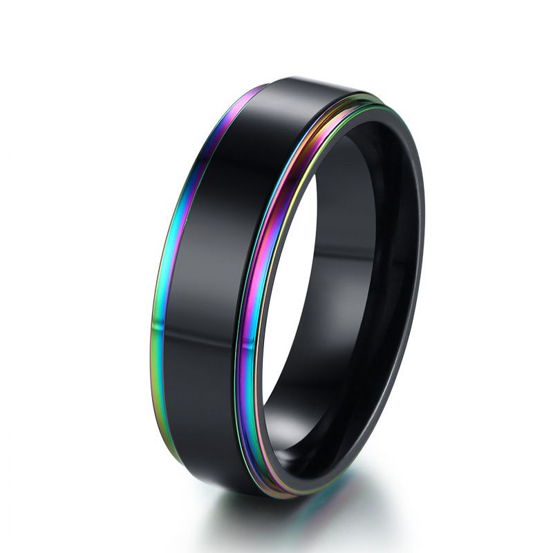 Rainbow Edge Mens Wedding Band Ring 6mm Black Stainless Steel Classic Simple Male Jewelry Statement Us Size 7 12