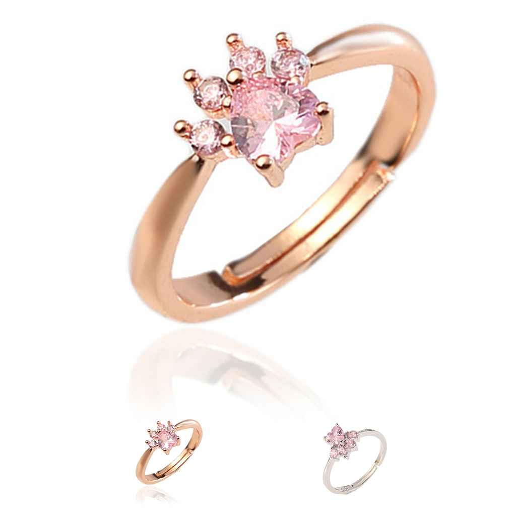 Beaums Women Girls Cartoon Paw Ring Wedding Zircon Crystal Paw Ring