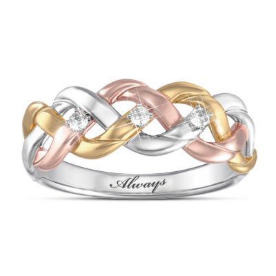 Three Cord Tri Color Diamond Couples Ring