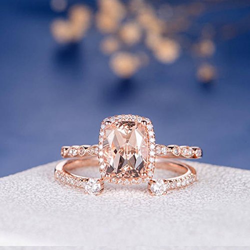Amazon Com Morganite Wedding Ring Set Cushion Cut Engagement Ring