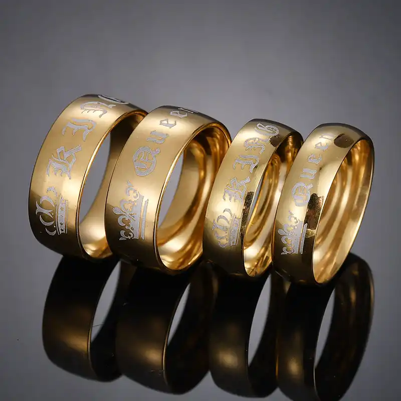 Elsemode 1piece Titanium Vintage King Queen Diy Engraved Couple Ring Romantic Engagement Wedding Rings For Men Women Jewelry