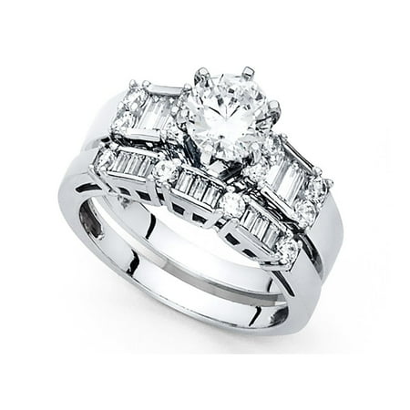 Solitare Cz Bridal Rings Set 14k White Gold Cz Engagement Ring Wedding Band Set Side Stones Size 7 5