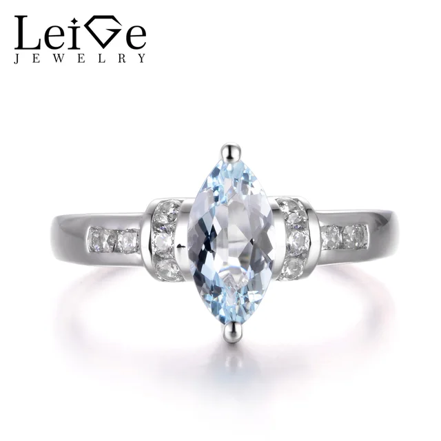 Us 74 4 40 Off Leige Jewelry Unique Wedding Rings Natural Blue Aquamarine Rings March Birthstone Marquise Cut Blue Stone 925 Sterling Silver In