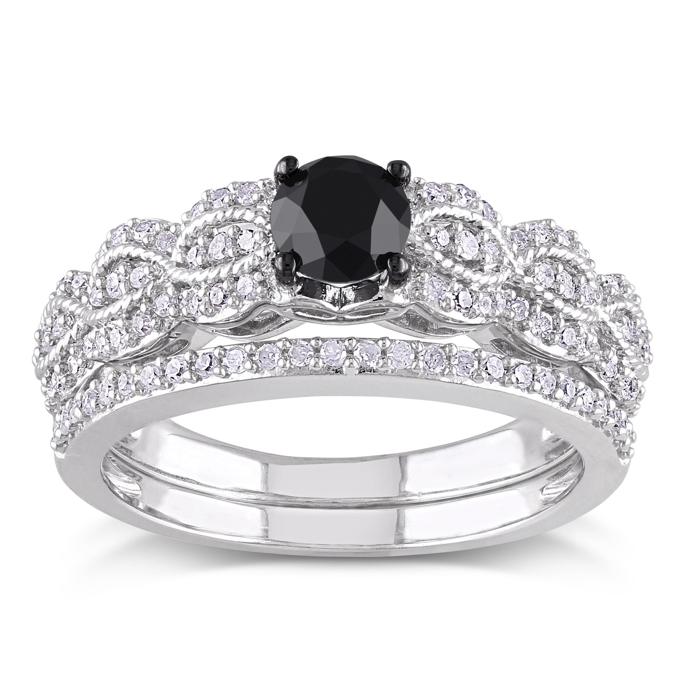 Miadora Sterling Silver 1ct Tdw Black And White Diamond Infinity Engagement Ring Wedding Band Bridal