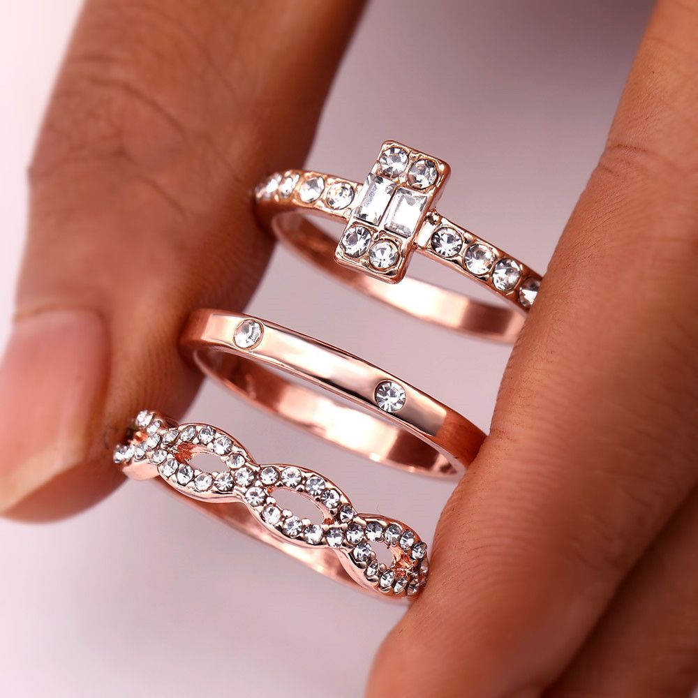 3pcs Set Fashion Infinity Rings Set For Women Girls Crystal Twist Ring Couples Gold Female Engagement Wedding Jewelry 2018 New