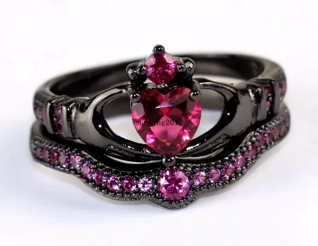 Us 10 99 Irish Claddagh Ring Black Gold Filled Heart Red Zircon Wedding Band Women S Engagement Ring Sets On Aliexpress Com Alibaba Group