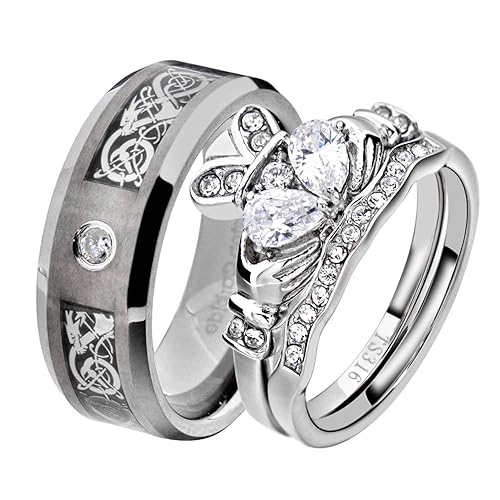 Amazon Com His And Hers Wedding Ring Sets Couple Ring Bridal Sets