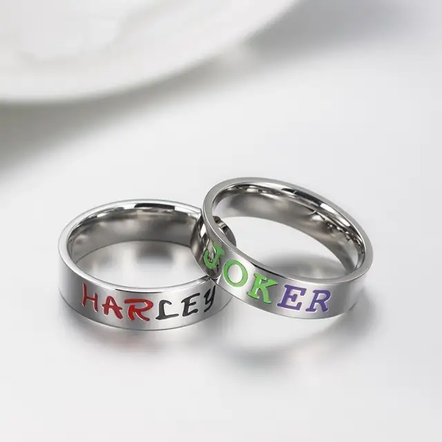 Comics Suicide Squad Harley Quinn And The Joker Lover Couple Stainless Steel Wedding Rings Gift In Rings From Jewelry Accessories On Aliexpress Com