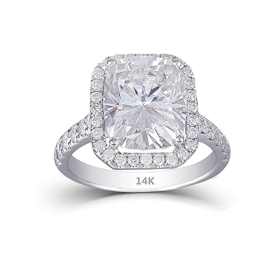Doveggs Solid 14k White Gold Center 5ct 9x11mm H Color Cushion Cut Moissanite Halo Engagement Ring
