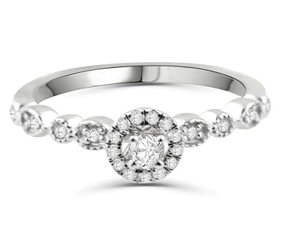 Womens Diamond Ring Vintage Style Ornate Halo Solitaire Ring Real
