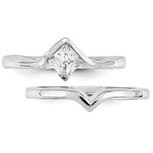 Princess Cut Diamond Engagement Ring Wedding Band Set Sterling