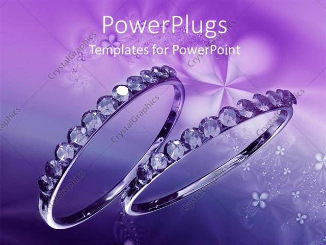 Powerpoint Template Two Shiny Crystal Wedding Rings On A Purple