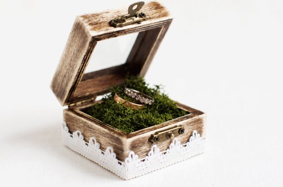 Rustic Wedding Ring Box With Moss Glass Box Ring Bearer Box Wooden Wedding Box Rong Pillow Alternative Box With Glass Like Acrylic Top