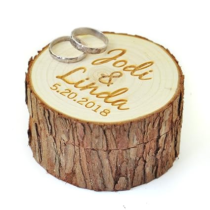 Agapediy Personalized Wood Wedding Ring Box With Name Date Ring Bearer The Laser Engraving Custom Rustic Wedding Ring Box