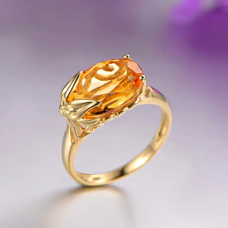 European Fashion Women Party Jewelry Gold Color Big Stone Wedding Ring For Women Leaves Shape Finger Ring Us Size 6 10 Anel