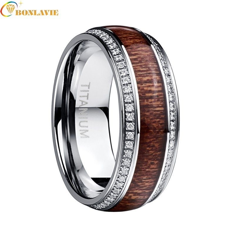 Vintage Men S Stainless Steel Ring White Crystal Acacia Wood Titanium Steel Wedding Ring For Men Male Valentine S Day Present