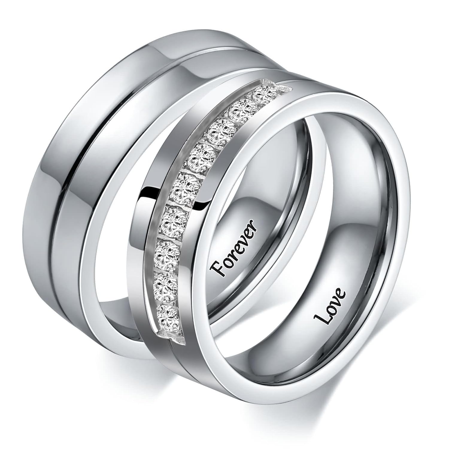 Aeici Stainless Steel Rings For Women Men Couple Ring Matching Set Wedding Bands Cubic Zirconia Cz Silver