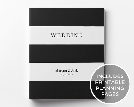 Wedding Planning Binder Printable Wedding Planner Custom 3 Ring Binder Engagement Gift Bridal Shower Gift Black White Striped