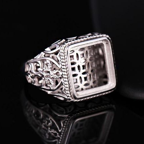 Fine Silver Art Deco Sterling Silver 925 Plated Gold 13 7x13 7mm Princess Cabochon Semi Mount Ring Setting Without Main Stone