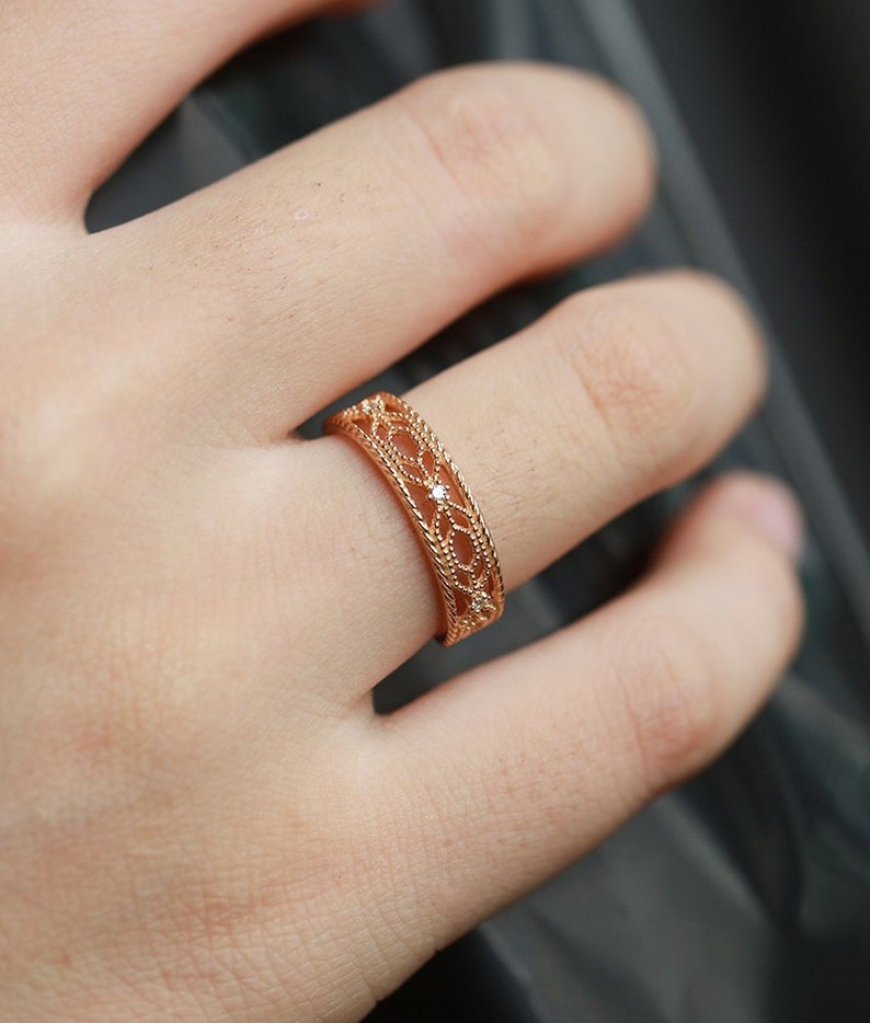 Vintage Wedding Band Diamond Women 14k Rose Gold Unique Round Cut Art Deco Antique Wedding Ring Jewelry Promise Anniversary Gift For Her