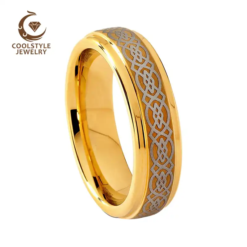 6mm Tungsten Carbide Wedding Band Yellow Gold Celtic Design Men