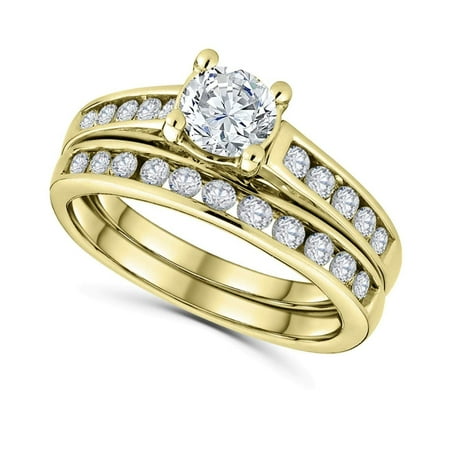 Engagement Rings Set For Her 10k Gold With 1 2ctw Diamonds Round Solitaire Center 10k Womens Wedding Set