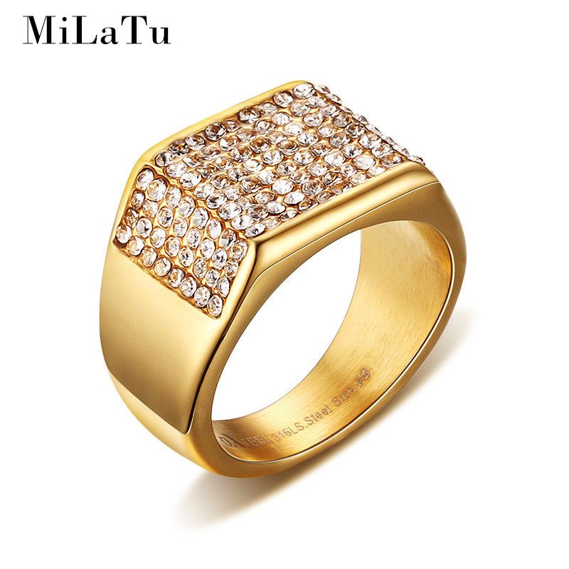 Wholesale Milatu Luxury Wedding Rings For Men Gold Color Stainless Steel Pave Setting Rhinestone Rings Male Jewelry Father S Gift R266g