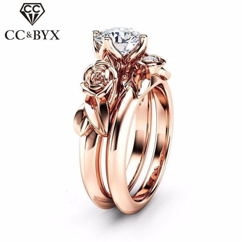 Cc Couple Rings For Women Vintage Flower Bridal Wedding Set Ring Engagement Lovers Jewelry Rose White Gold Color Cc2129