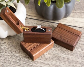 Thin Engagement Ring Box Wedding Ring Box Anniversary Gift Wooden Ring Box Hand Made Proposal Box Walnut Rectangle Woodsbury