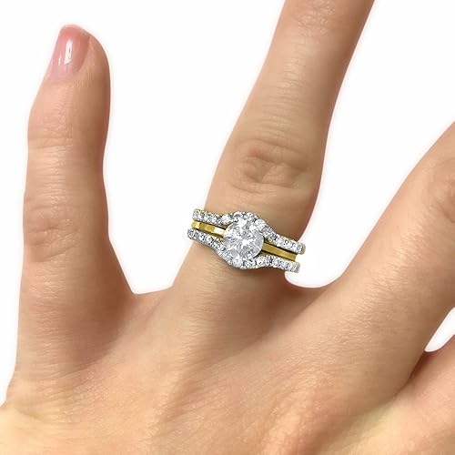 Twobirch Wedding Ring Guard Set Includes 1 Ct Round Cz Solitaire