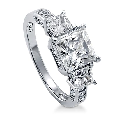 Berricle Rhodium Plated Sterling Silver Princess Cut Cubic Zirconia Cz 3 Stone Anniversary Engagement Ring 3 13 Ctw