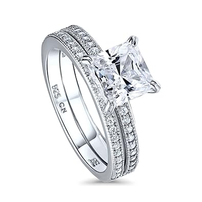 Berricle Rhodium Plated Sterling Silver Princess Cut Cubic Zirconia Cz Solitaire Engagement Wedding Ring Set 2 24 Ctw