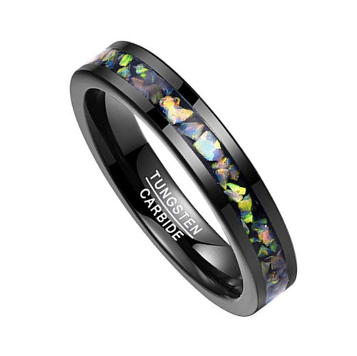 5mm Unisex Or Women S Tungsten Carbide Wedding Ring Bands Black Band And Multiple Color Rainbow Opal Inlay With Organic Tones