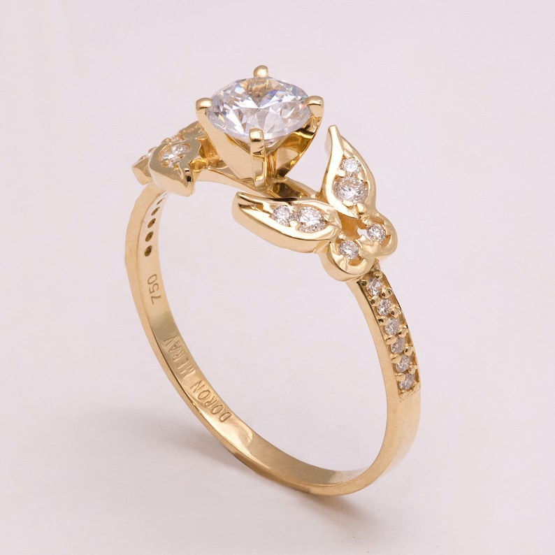 Butterfly Engagement Ring 14k Gold And Diamond Engagement Ring Diamond Ring Unique Engagement Ring Art Deco Engagement Ring Art Deco