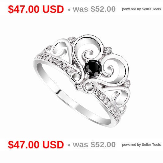 Tiara Ring Princess Crown Ring Black Engagement Ring Black Promise Ring For Her Princess Ring Tiara Promise Ring Black Wedding Ring Cz Ring