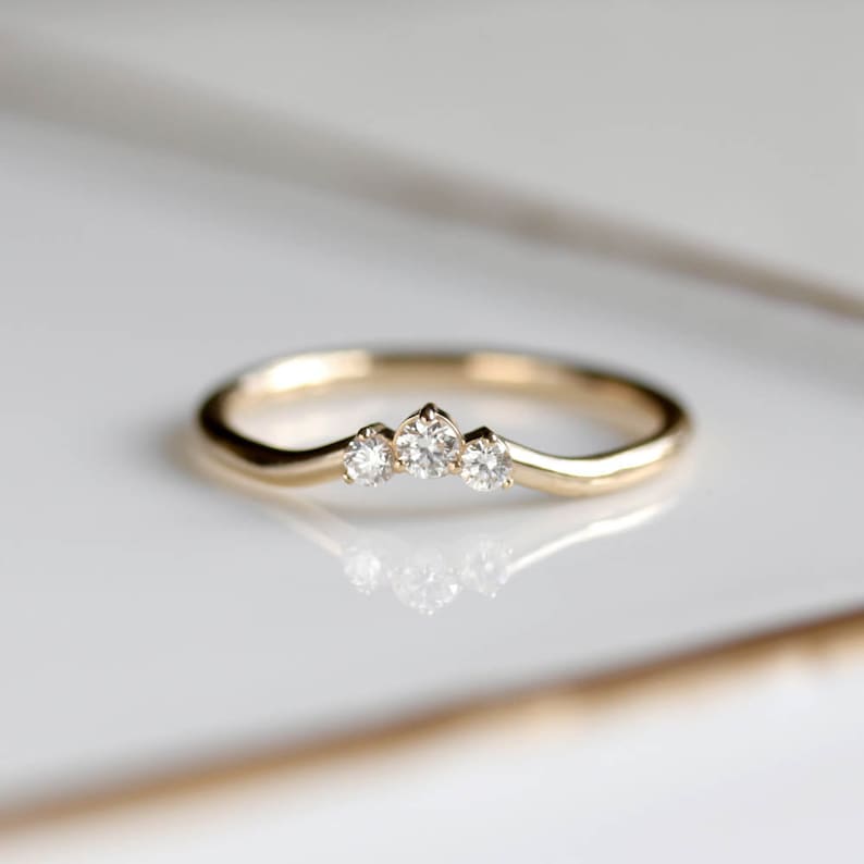 Dainty Gold Ring Stackable Rings Womens Wedding Band Diamond Contour Band Curved Wedding Band Simple Gold Ring Diamond Ring
