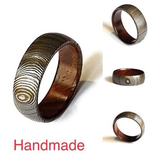 Details About Handmade Damascus Steel Ring With Wood Liner All Uk Usa Sizes