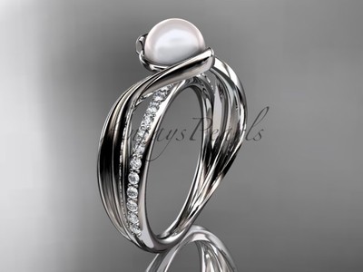 Unique Diamond Engagement Ring 14k White Gold Pearl Simple Wedding Ring Ap78 Ebay