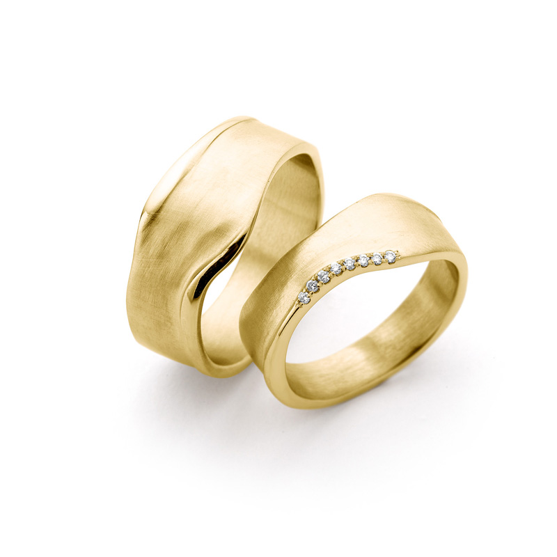 18k Yellow Gold Matching Wedding Bands Set His Hers Mens Womens Rings