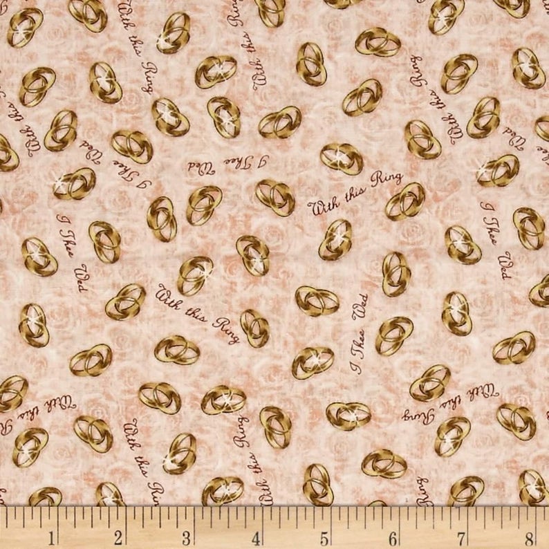 Quilting Treasures I Do Wedding Rings On Peach 100 Cotton Fabric By The Yard 36 X43