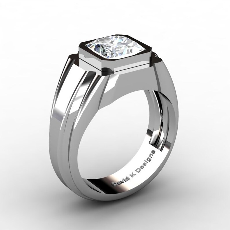 Mens Modern 14k White Gold 2 0 Ct Princess White Sapphire Ring R1006 14kwgws