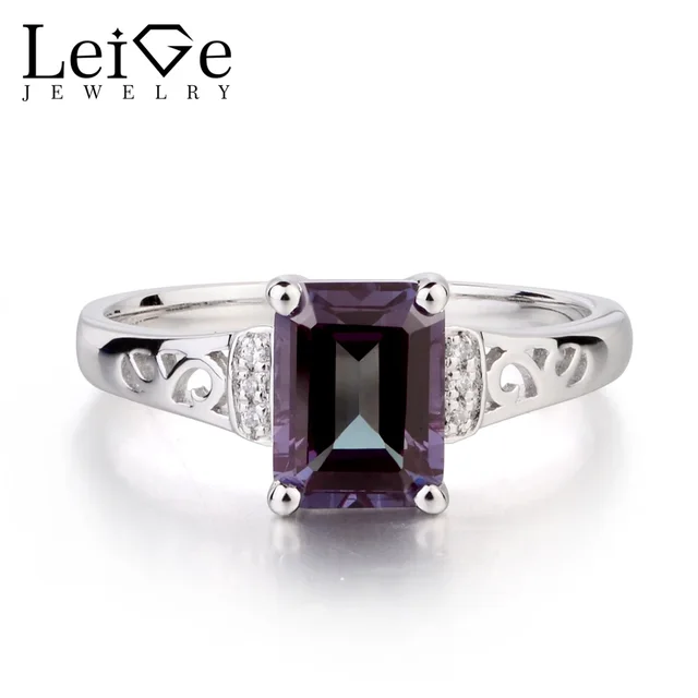 Us 85 2 40 Off Leige Jewelry Solid 925 Sterling Silver Lab Alexandrite Ring Wedding Rings Emerald Cut Gemstone June Birthstone Gifts For Women In