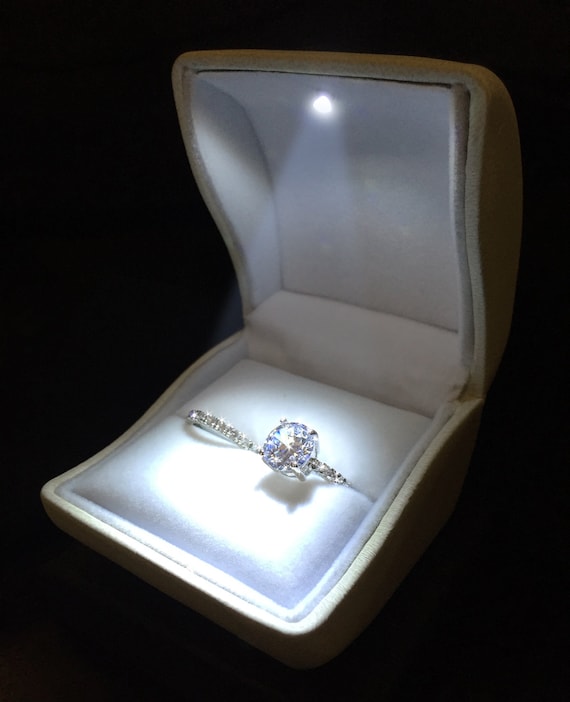 Tsv Diamond Ring Box White Led Light Velvet Jewelry Gift Wedding Proposal Engagement
