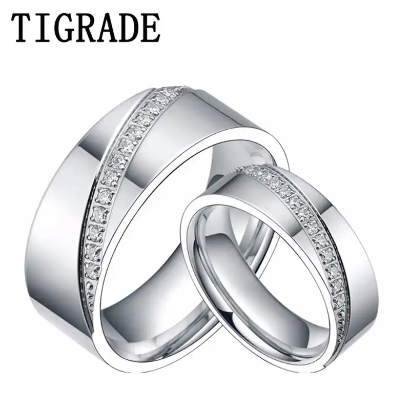 6mm 8mm Titanium Ring Men Women Cz Inlay Promise Jewelry Eternity Couple Rings Matching Set Wedding Band Valentines Day Gift