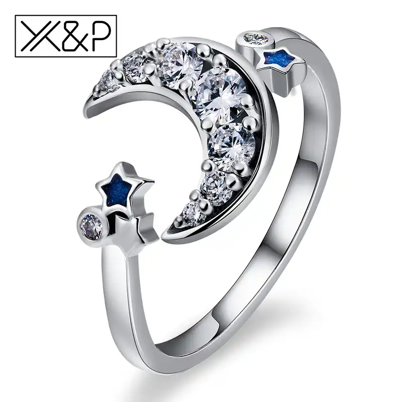 Artilady Cz Moon Star Rings For Women Open Ring Aaaa Cubic Zirconia Moon And Star Open Band Ring Adjustable For Us 5 9