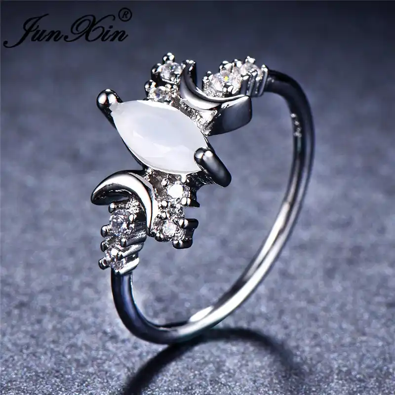 Junxin Marquise Cut White Opal Stone Moon Star Wedding Rings For Women Silver Color Metal Crystal Female Thin Ring Midi Jewelry