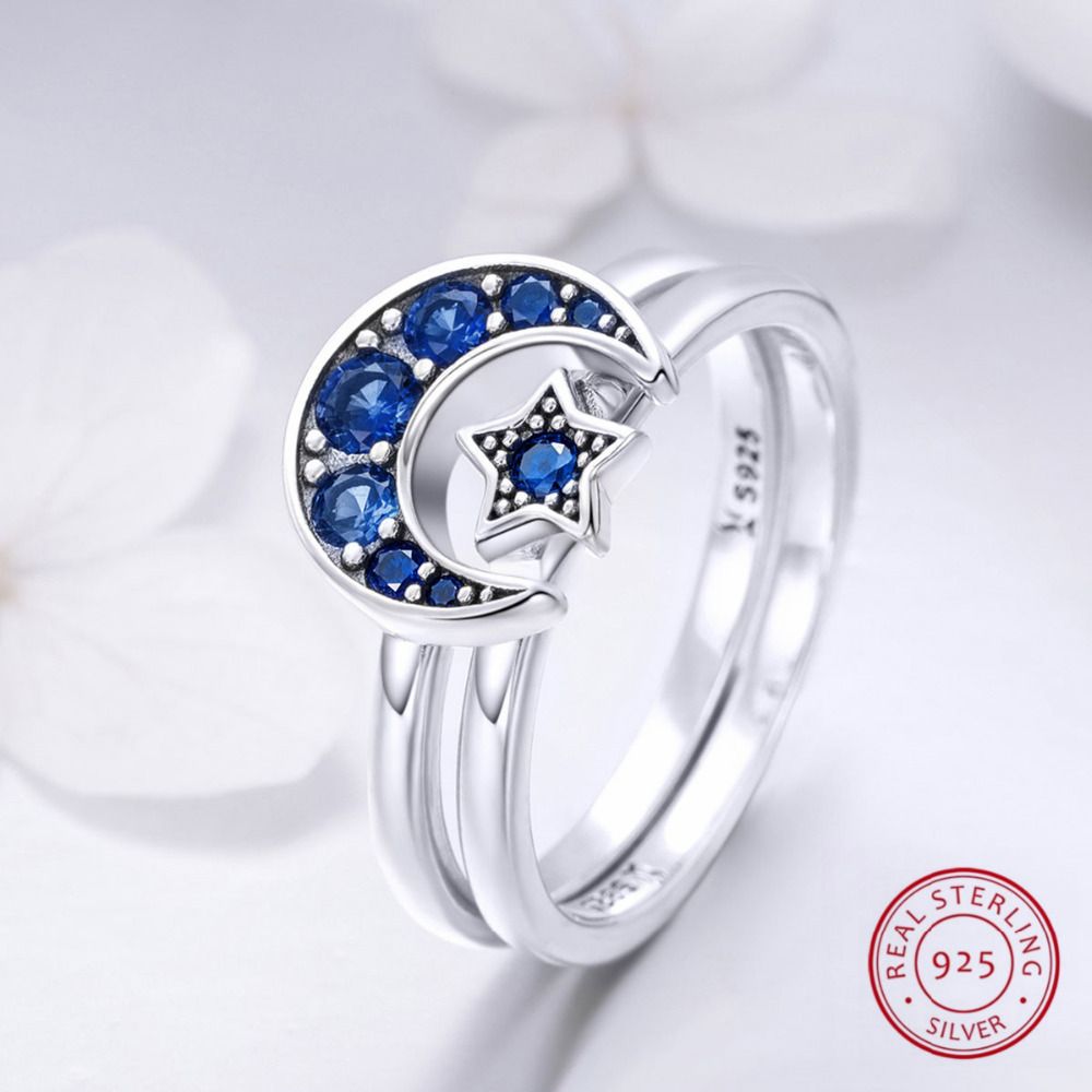 100 Real 925 Sterling Silver Moon Star Rings For Women Couple Cp Brilliant Cz Crystal Engagement Halloween Jewelry Bright Sky