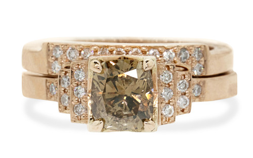 1 06 Carat Dark Champagne Diamond Wedding Set In Rose Gold
