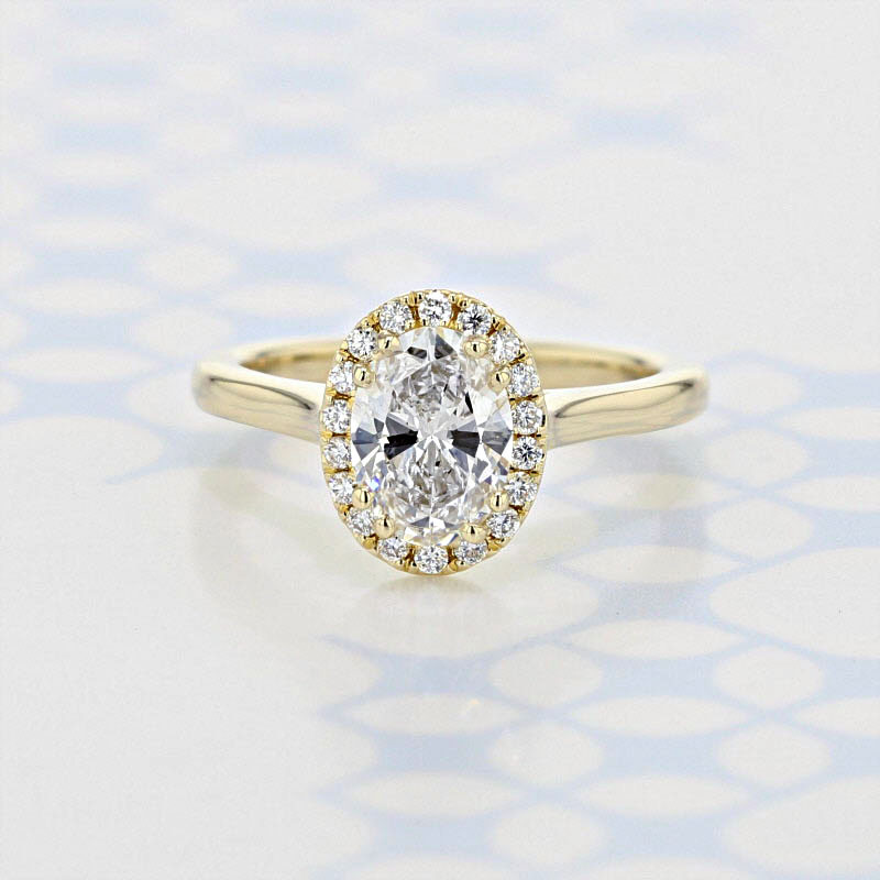 18ct White Gold Solitaire Diamond With Oval Shape Diamond Halo Engagement Ring
