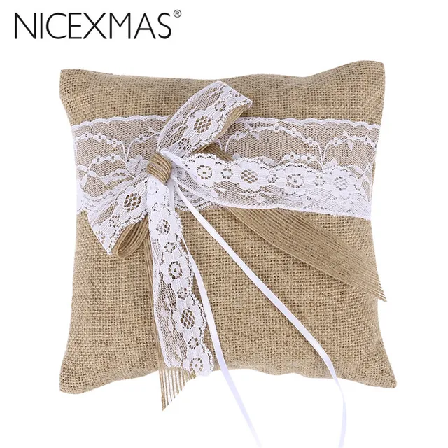 Us 5 93 38 Off Romantic Bridal Wedding Ceremony Jute Pocket Ring Bearer Pillow Cushion Wedding Decor In Party Diy Decorations From Home Garden On